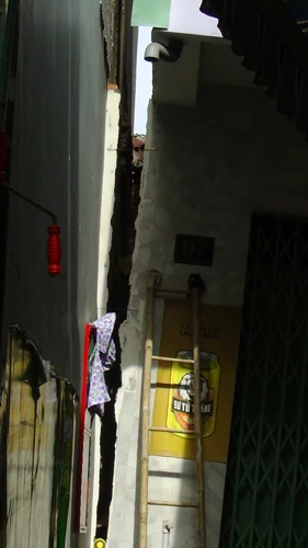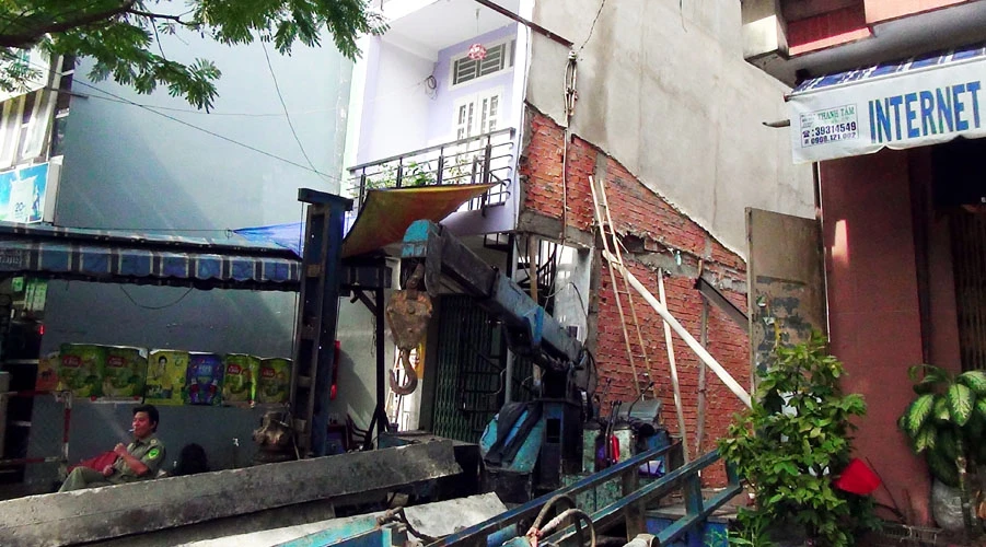 Theo ghi nhận PV, kế bên căn nhà gặp sự cố có một công trình đang thi công đóng cọc, làm móng và có hố đào sâu gần mét, đang trong giai đoạn đóng cọc nhồi để xây mới.
