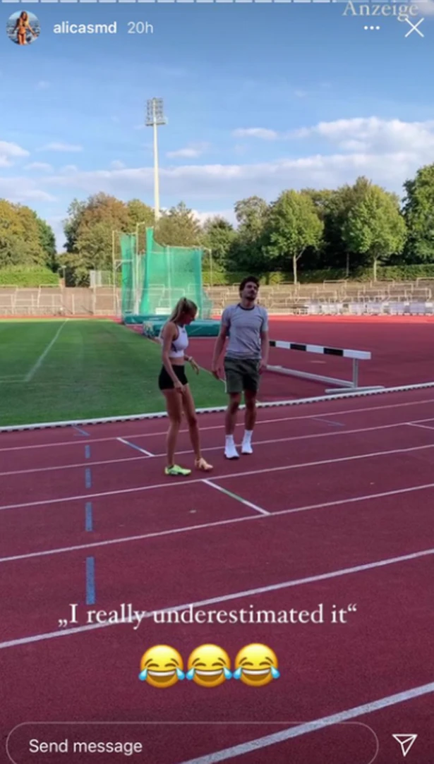 Tại đây, cô đã có cuộc so tài cự ly 400m với đội trưởng 31 tuổi của CLB Dortmund, Mats Hummels.