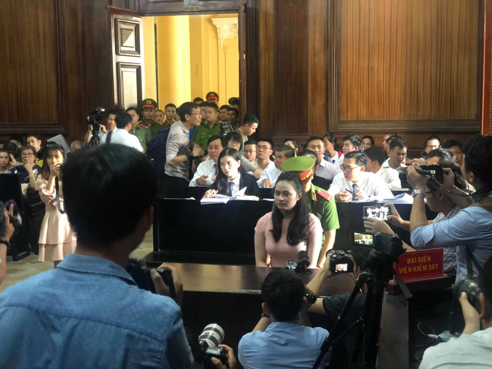 Tại phòng xử trước giờ bắt đầu phiên toà, hotgirl Ngọc Miu bị vây kín bởi loạt ống kính PV nhưng lúc này bị cáo đã tỏ ra thoải mái hơn.