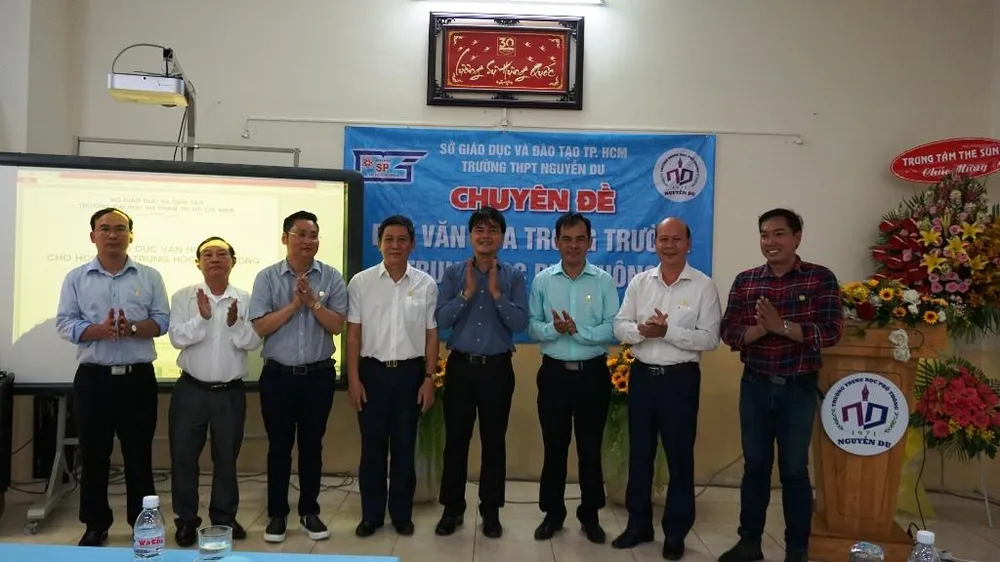 Ông Huỳnh Thanh Phú, Hiệu trưởng trường THPT Nguyễn Du, chia sẻ trước tình trạng văn hóa ngoại lai đang ngày càng xâm nhập sâu vào một bộ phận giới trẻ ở nhiều lĩnh vực, trường đã phối hợp với trường Đại học Sư phạm TP.HCM xây dựng chuyên đề “Dạy văn hóa cho học sinh THPT”.
