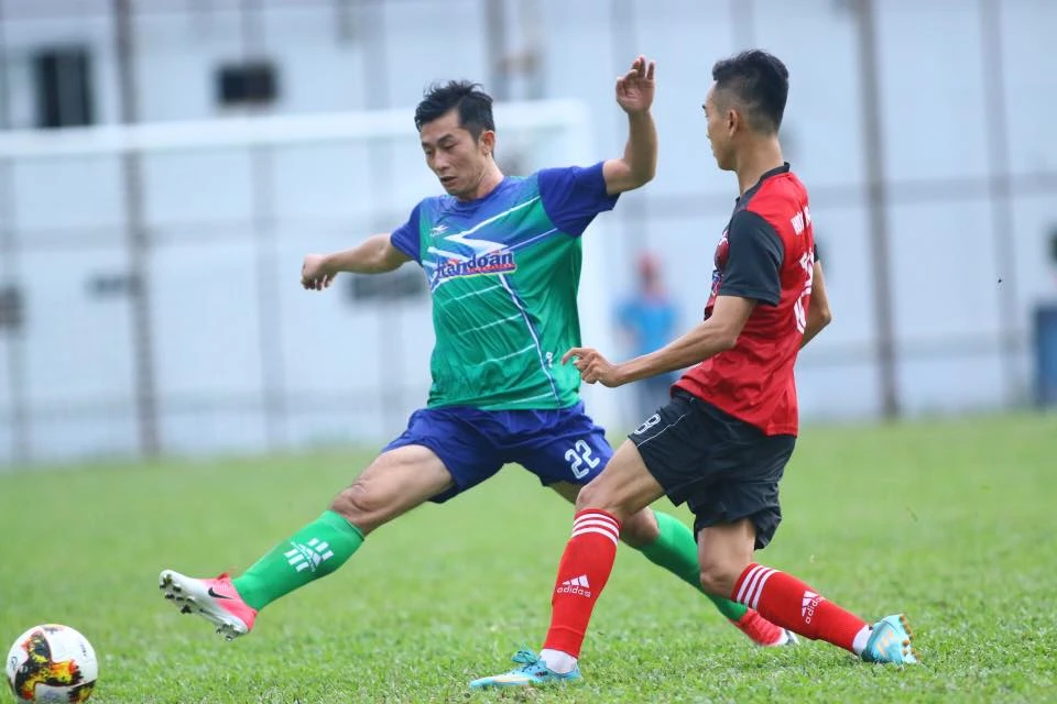 Trường Giang FC (xanh) không còn phép màu như ở bán kết.