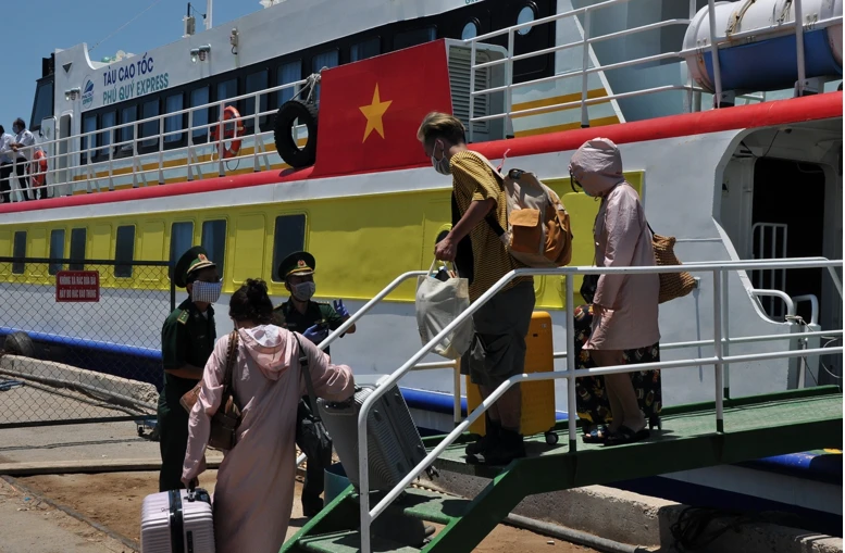 Kiểm tra khách du lịch lên xuống tàu Phan Thiết- Phú Qúy