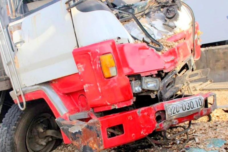 Thời điểm này, xe tải 92C-030.10 đi hướng Đà Nẵng - Quảng Ngãi đã bất ngờ tông vào đuôi một xe khách đi cùng chiều. Cú tông mạnh khiến tài xế xe tải bị thương. Phần đầu xe bị hư hỏng nghiêm trọng.