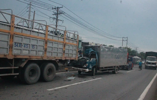 Chiều 13-7, trên quốc lộ 1A, cách đường Nguyễn Văn Quá khoảng 400 mét (phường Tân Thới Hiệp, quận 12, TPHCM) xe tải nhẹ biển kiểm soát TP.HCM (chưa rõ danh tính tài xế và phụ xe), lưu thông trên quốc lộ 1, hướng từ quận 12 đi quận Thủ Đức tông mạnh vào đuôi xe tải đang dừng trong lề làn đường ô tô.