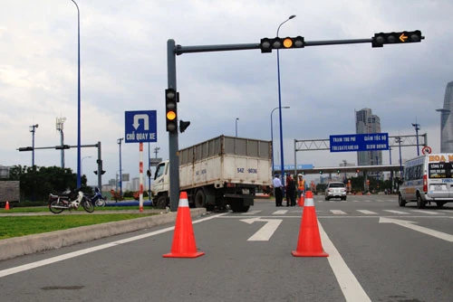 Vụ tai nạn xảy ra vào khoảng 15 giờ chiều ngày 24-8, chiếc xe tải BKS 54Z-8036 (chưa rõ danh tính người điều khiển), chạy trên đường Mai Chí Thọ, hướng từ Q.2 đi Q.1, TP.HCM.