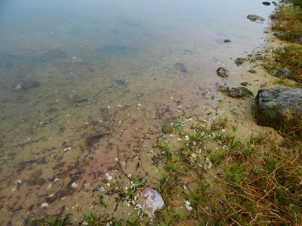 Vệt nước màu đỏ nhạt dần ở ven bờ đầm Lập An.