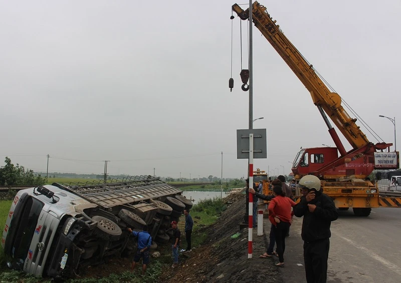 .Chiều cùng ngày, một chiếc Xe tải khi đang lưu thông trên QL1 qua tỉnh Thừa Thừa Huế theo hướng từ TX Hương Trà vào TP Huế. Khi đến đoạn 816 QL1 (TX Hương Trà, Thừa Thiên- Huế), tài xế phát hiện xe máy băng qua đường liền đánh tay lái qua phải để tránh rồi đâm gãy cọc tiêu và lao xuống bên ruộng lúa, lật nghiêng.