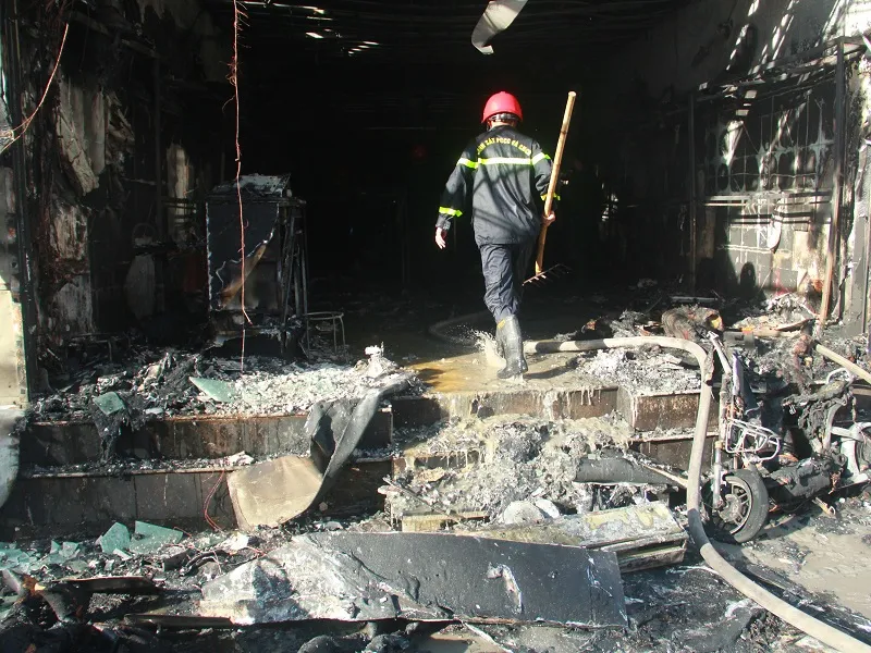 Vụ cháy không gây thiệt hại về người nhưng nhiều tài sản trong tầng một của shop thời trang bị lửa thiêu rụi, ước tính thiệt hại khoảng 300 triệu đồng.