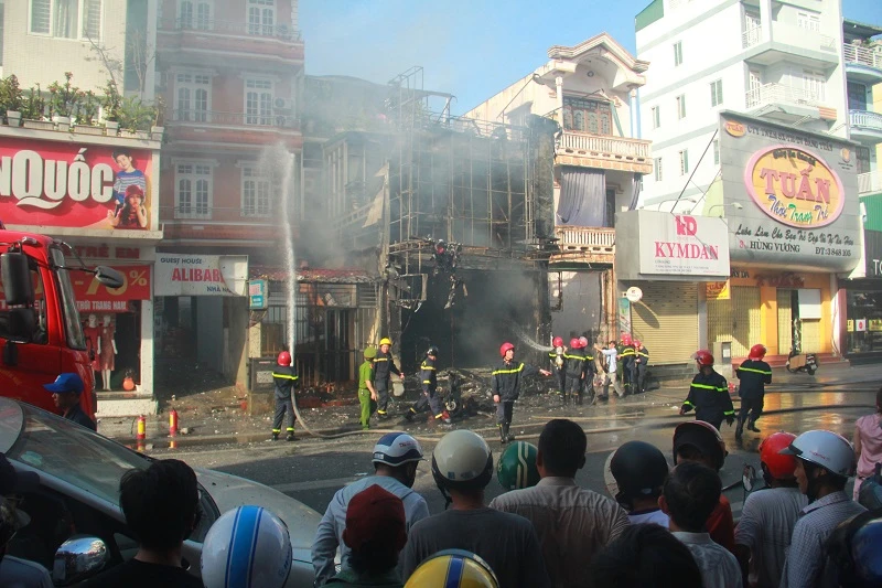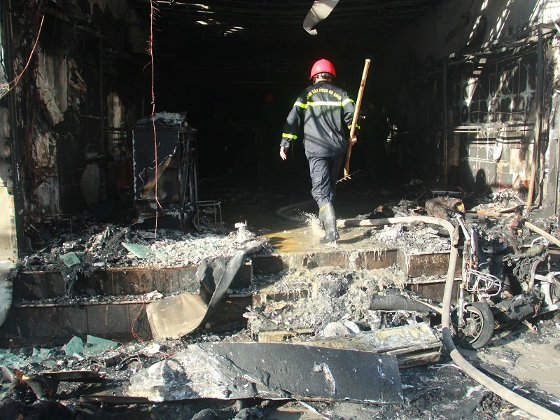 Đây là ngôi nhà 3 tầng vừa làm nhà ở vừa kinh doanh buôn bán áo quần nên ngọn lửa nhanh chóng lan rộng, thiệu rụi tầng một của căn nhà.
