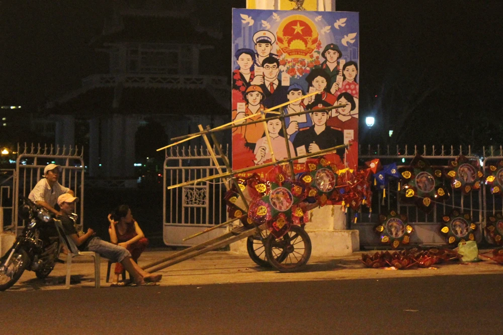 Các loại lồng đèn, cờ, hoa được bày bán cả ngày lẫn đêm.