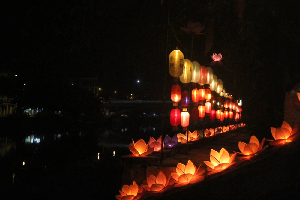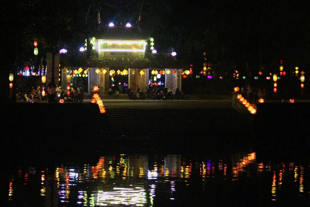 Dòng sông đoạn trước tổ đình Từ Hiếu được trang trí lung linh.