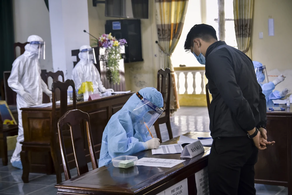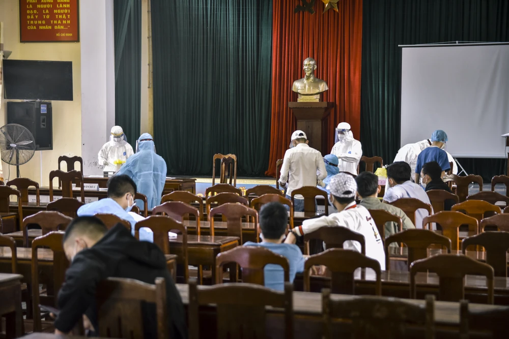 Các huyện, thị, thành phố tại Thừa Thiên - Huế trong những ngày này đã tổ chức lấy mẫu xét nghiệm PCR cho các chiến sĩ chuẩn bị nhập ngũ, nhiều địa phương đã hoàn thành và chờ kết quả xét nghiệm. Ảnh: NGUYỄN DO
