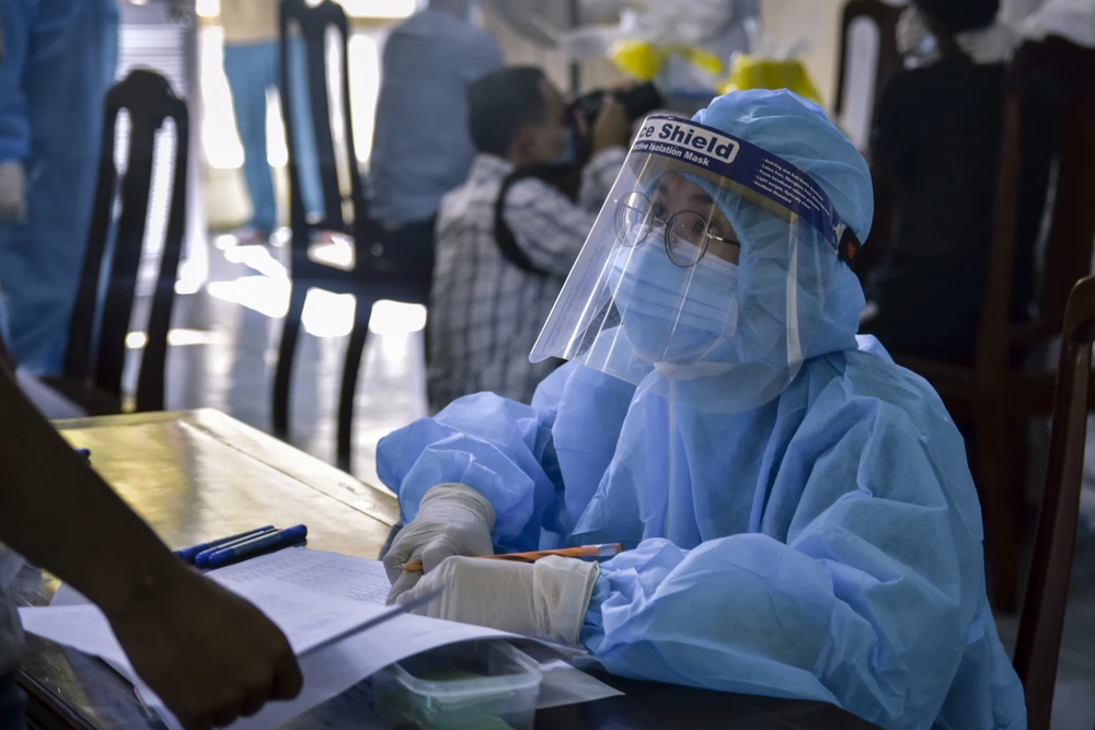 Nhân viên Y tế kiểm tra thông tin và...