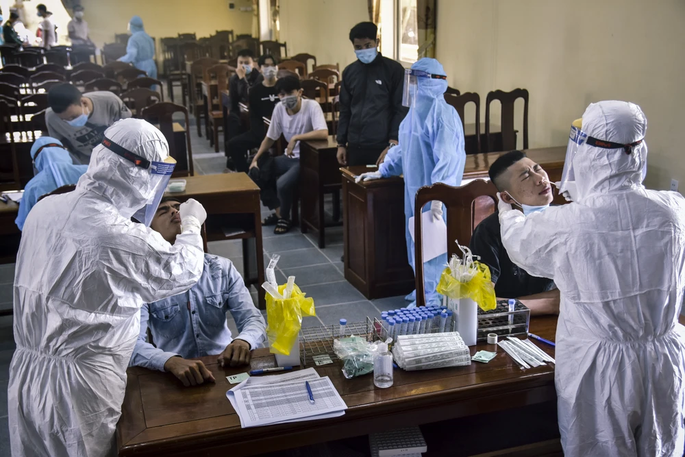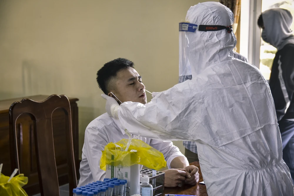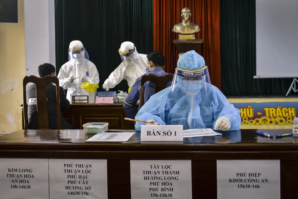Trước thời điểm các chiến sĩ lên đường nhập ngũ, tỉnh Thừa Thiên - Huế tổ chức lấy mẫu xét nghiệm PCR nhằm đảm bảo quân nhân lên đường nhập ngũ mạnh khỏe, đảm bảo các yêu cầu về phòng chống dịch. Ảnh: NGUYỄN DO