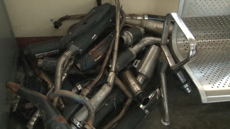 Lực lượng chức năng tháo hàng trăm ống pô độ, không có bộ phận giảm thanh, đảm bảo phương tiện đúng theo tiêu chuẩn kỹ thuật quy định.