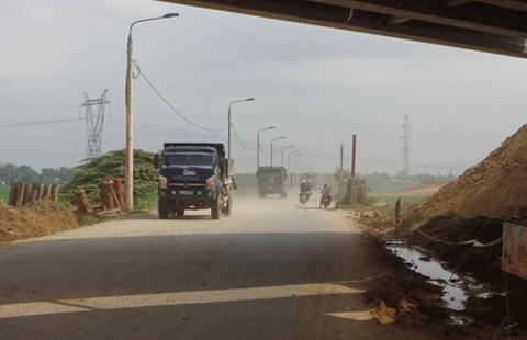 Theo ông Cự, hầu hết các xe tải chở đất đá này đều quá tải nhưng không thấy lực lượng chức năng xử lý. Đất đá rơi vãi khắp nơi làm bụi bay mù mịt. Nhà dân ven đường không dám mở cửa, trẻ em không dám ra đường.