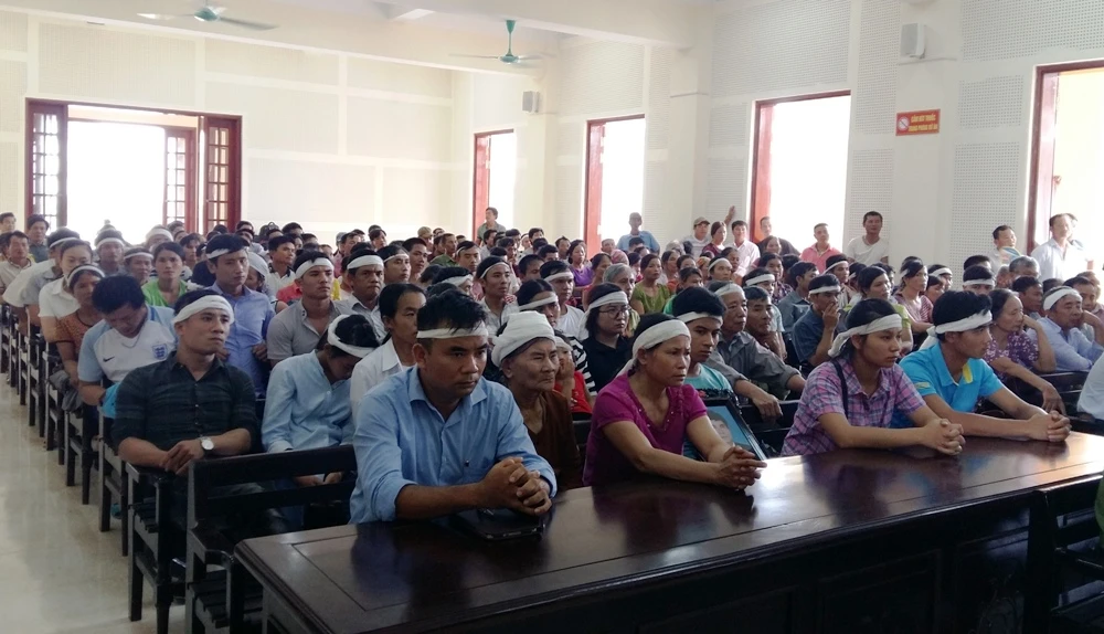 Có hàng trăm người thân và người dân đến tham dự phiên tòa khiến ghế dự khán của hội trường xét xử không còn chỗ trống. Rất đông người thân bị hại mang khăn tang và di ảnh nạn nhân đến tòa.