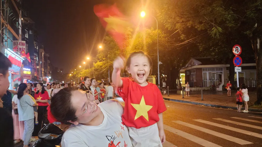 Dù phải đi bộ nhiều nhưng cả gia đình ai nấy đều rất vui, đặc biệt là con gái Ly Ly 5 tuổi của chị luôn nở nụ cười rạng ngời khiến ai cũng vui theo. Một người dân nhìn bé Ly Ly hào hứng vẫy cao lá cờ sao vàng chia sẻ: "Đó chính là nụ cười của hòa bình!"
