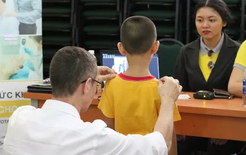 Kiểm tra sớm để phát hiện tình trạng cong vẹo cột sống ở trẻ. Ảnh: M.H