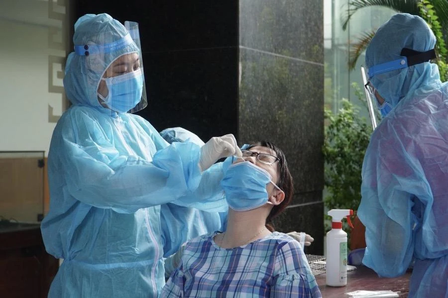 Lấy mẫu xét nghiệm COVID-19 tại TP.HCM. Ảnh: MINH TÂM