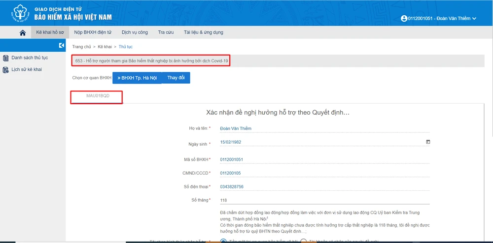 Hướng dẫn đăng ký trực tuyến nhận tiền hỗ trợ từ Quỹ bảo hiểm thất nghiệp