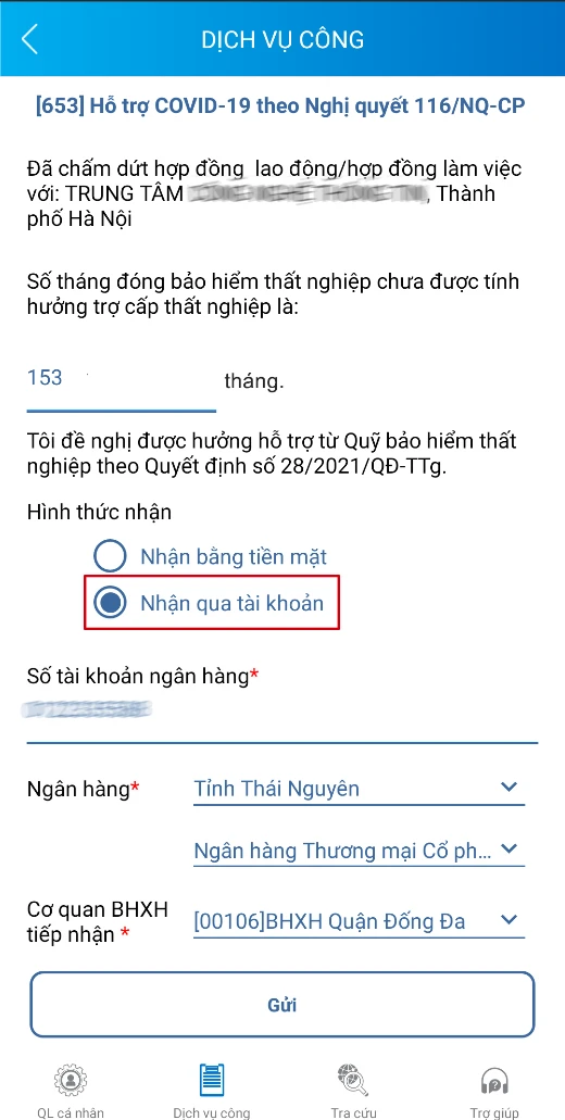 Bước 5: Lựa chọn hình thức nhận hỗ trợ: