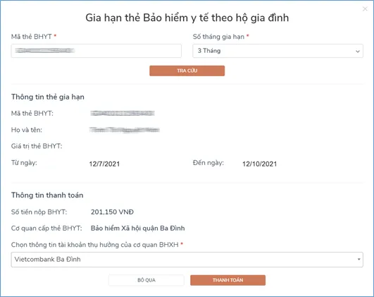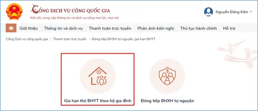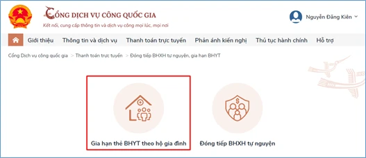 1. Dịch vụ thanh toán trực tuyến “Gia hạn thẻ BHYT theo hộ gia đình”