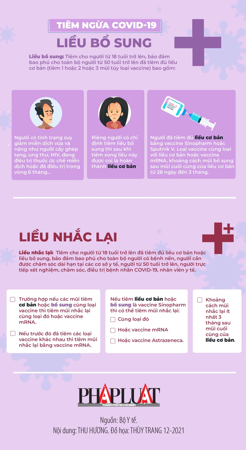 (PLO)- Ngày 17-12, tại hướng dẫn mới nhất về tiêm vaccine COVID-19 liều bổ sung, nhắc lại, Bộ Y tế cho phép tiêm liều bổ sung sau mũi cuối cùng của liều cơ bản từ 28 ngày đến 3 tháng.