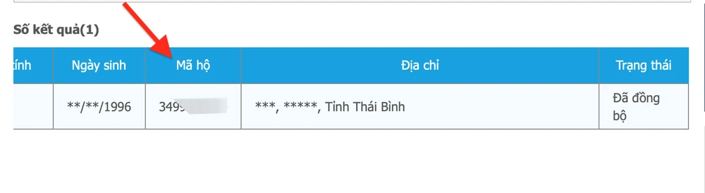 Bước 4: Kết quả sau khi tra cứu sẽ hiện ra với các thông tin như: Mã số bảo hiểm xã hội, họ tên, giới tính, ngày sinh, mã hộ gia đình, địa chỉ và trạng thái. Mã hộ chính là số sổ hộ khẩu mà người dân cần lưu lại để sử dụng khi cần thiết.