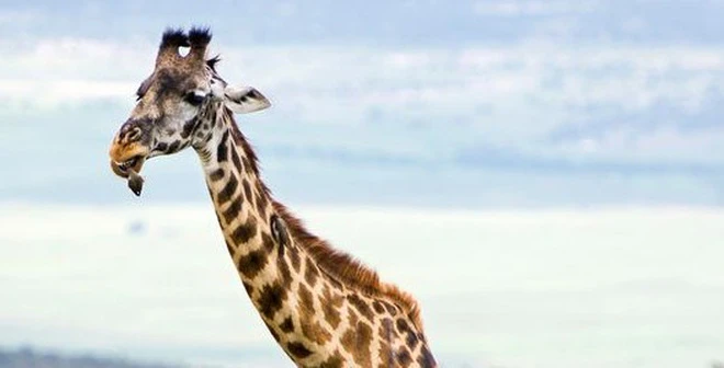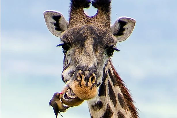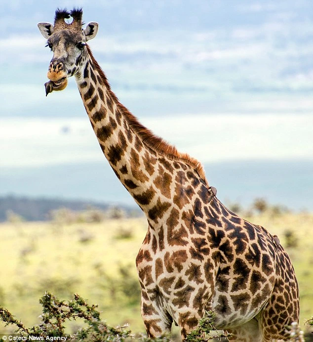 Mới nhìn, tưởng chừng như chú hươu cao cổ có thể ngậm miệng một phát là chú chim bẹp dí. Ảnh: Yulia Sundukova