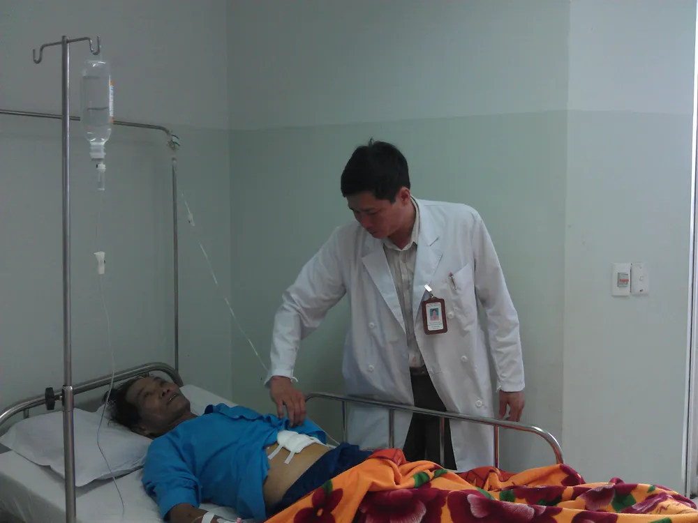 Trước đó, anh Nguyễn Đức C. (ngụ Phổ Phong, Đức Phổ, Quảng Ngãi) được người nhà đưa đến cấp cứu tại bệnh viện Đa khoa Quảng Ngãi trong tình trạng đau bụng đột ngột, tái diễn nhiều lần. Các bác sĩ tại đây chuẩn đoán anh C. bị xuất huyết nội do u gan vỡ. Do tình trạng sức khỏe của bệnh nhân diễn biến phức tạp nên bệnh viện tiến hành truyền máu và chuyển thẳng ra bệnh viện Ung thư Đà Nẵng.