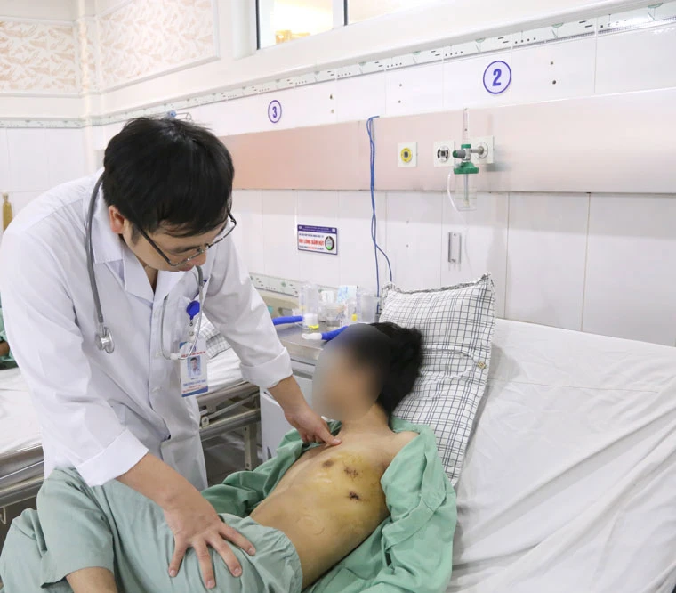 Sau khi hội chẩn, các BS quyết định phẫu thuật dẫn lưu màng phổi trái cấp cứu, hút ra khoảng 600 ml máu không đông và khí. Bệnh nhân được dùng thuốc cầm máu và theo dõi dẫn lưu màng phổi.