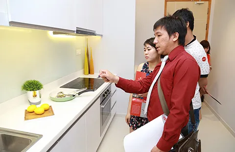 Khách hàng tham quan căn hộ do một công ty Việt hợp tác với quỹ đầu tư Nhật Bản. Ảnh: QH