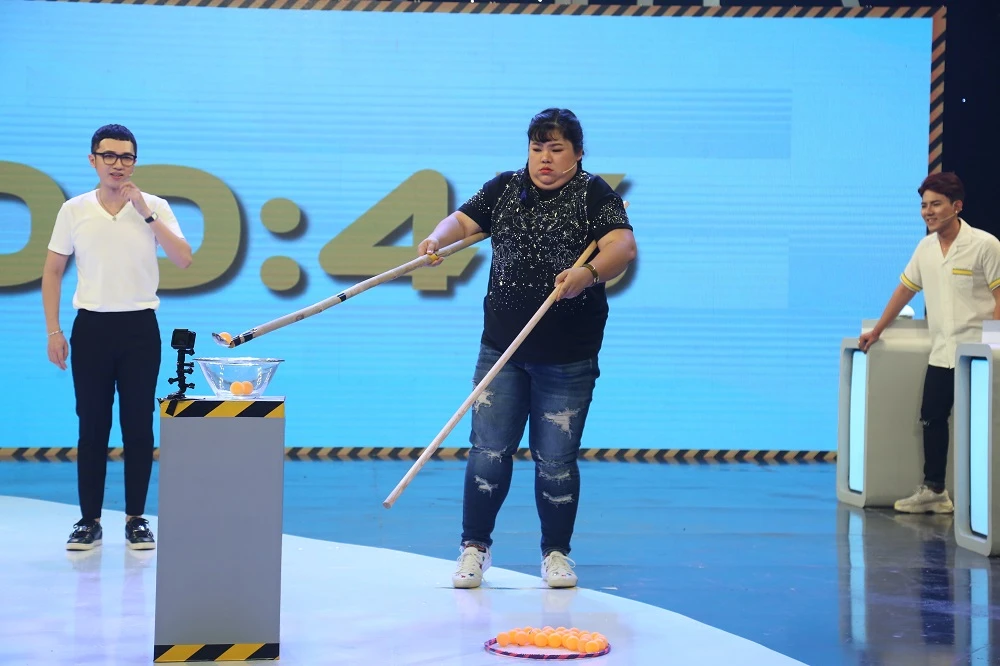 Trò chơi vận động bao giờ cũng đòi hỏi sự khéo léo của khách mời.