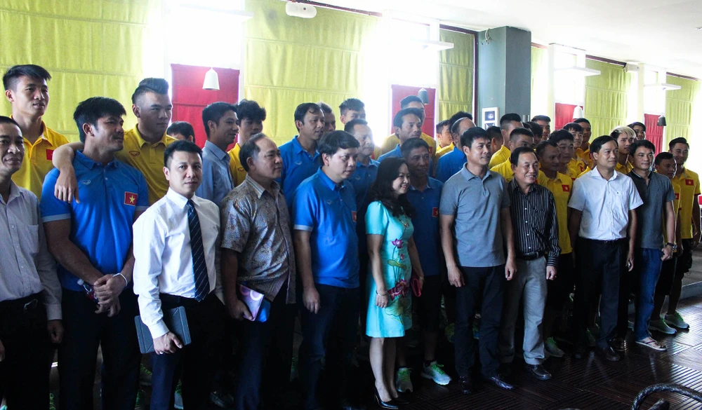 Các cầu thủ đội tuyển Việt Nam tại buổi gặp đại sứ quán.