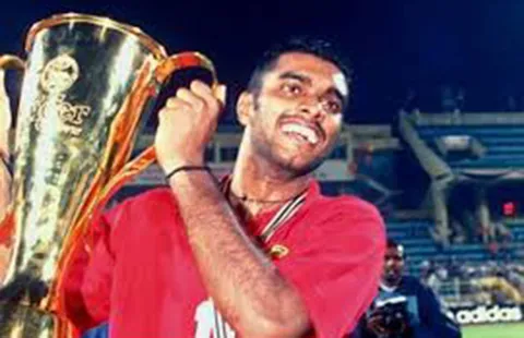 HLV Hữu Thắng chắc chắn không bao giờ quên hình ảnh Sasi Kumar nâng cúp vàng ngay trên sân Hàng Đẫy. Ảnh: TƯ LIỆU