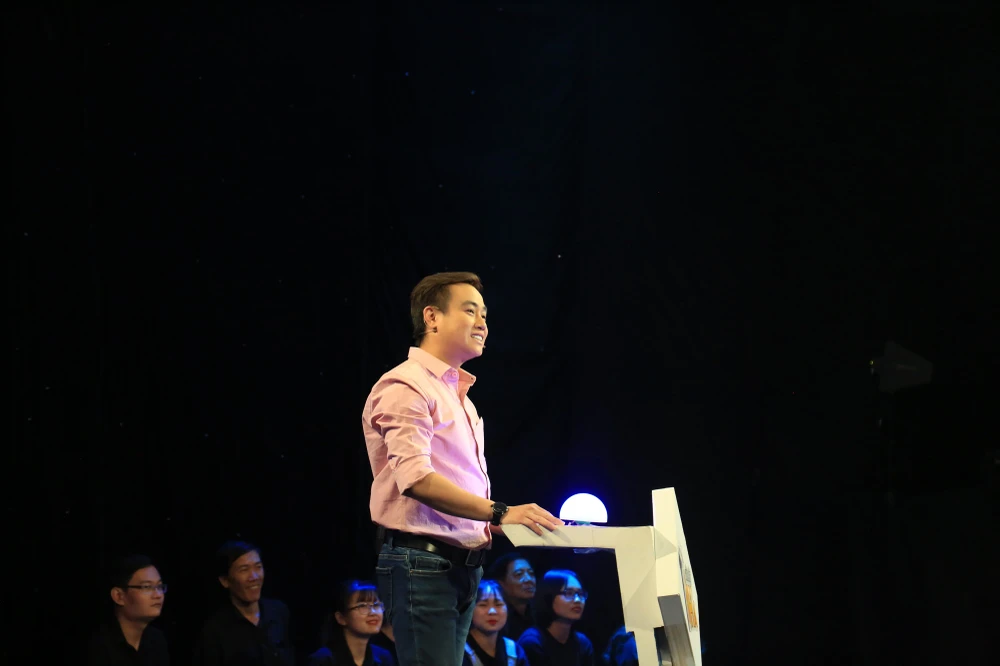 MC Thanh Duy chuyển hướng sang các nhân vật số bốn, năm, sáu nhưng Dương Lâm khẳng định: “Ba nhân vật này là núm ruột của nhau rồi. Phải có thời gian tập luyện mới ăn ý với nhau như vậy. Chỉ còn nhân vật số một, hai, ba thôi”.
