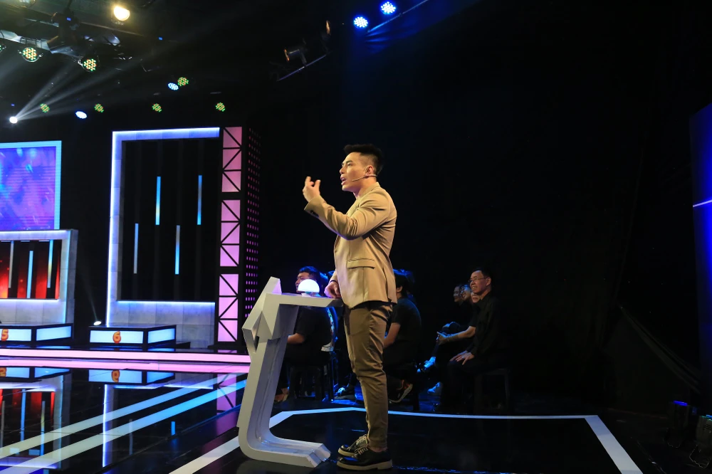Anh liền quay sang đánh đuổi Hữu Tín chạy quanh sân khấu chỉ vì đồng nghiệp đã tư vấn “trớt quớt”, khiến mình chuyển từ đáp án đúng sang đáp án sai.