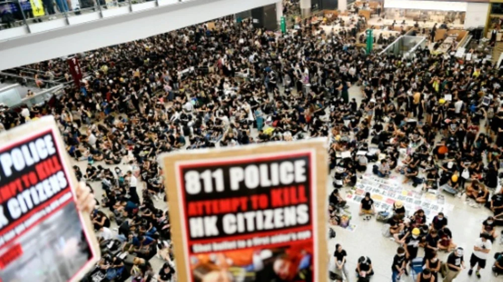 Trước đó cùng ngày khi người biểu tình bắt đầu tràn vào sân bay, quan chức Trung Quốc đã kêu gọi sử dụng "bàn tay thép" để giải quyết "những hành vi bạo lực" ở Hong Kong.