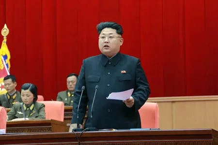Chủ tịch Kim Jong-un phát biểu trong một cuộc họp ở Bình Nhưỡng hôm 26-4