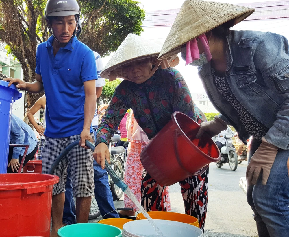 Người dân phải lấy nước từ xe bồn của KIWACO chở đến. Ảnh: CTV T.H
