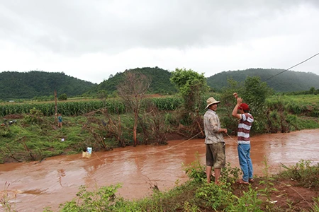 Chính quyền bắt dây cáp tiếp tế lương thực cho các hộ dân bị cô lập.