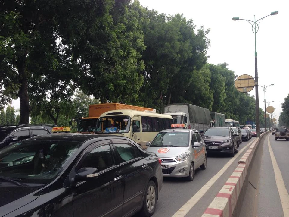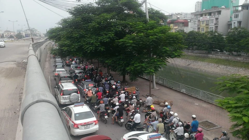 Đường Phạm Văn Đồng hướng sân bay Nội Bài bị tê liệt