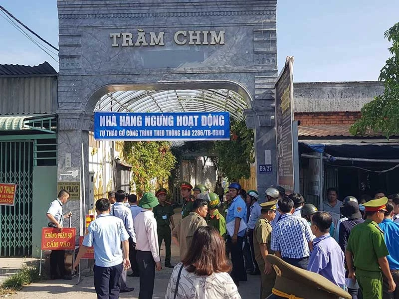 Ngày 7-1, UBND huyện Bình Chánh, UBND xã Tân Quý Tây và các cơ quan liên quan đã tiến hành cưỡng chế công trình xây dựng tổ hợp Gia Trang quán - Tràm Chim resort (viết tắt là Tràm Chim resort) tại xã Tân Quý Tây, huyện Bình Chánh, TP.HCM.