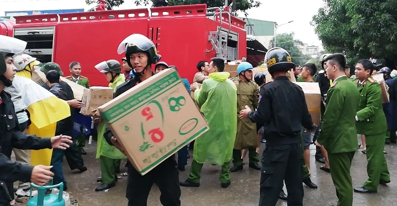 Ngoài ra, rất nhiều hàng hóa trị giá hàng chục tỉ đồng đã được người dân cùng hàng trăm cảnh sát di chuyển ra khu an toàn kịp thời.
