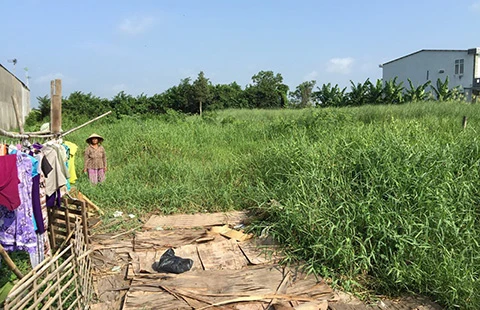 Khu đất của bà Trần Thị Chương Phương “treo” cả năm nay không hoàn tất được thủ tục mua bán do đang vướng giấy đỏ bị cấp sai. Ảnh: VIỆT HOA