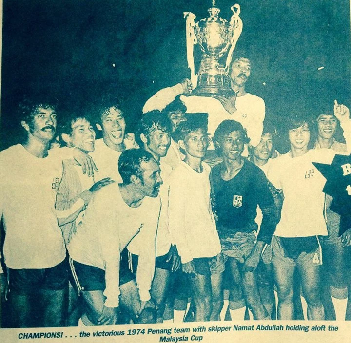 Đội trưởng Namat Abdullah nâng cao chiếc cúp quốc gia Malaysia 1974.
