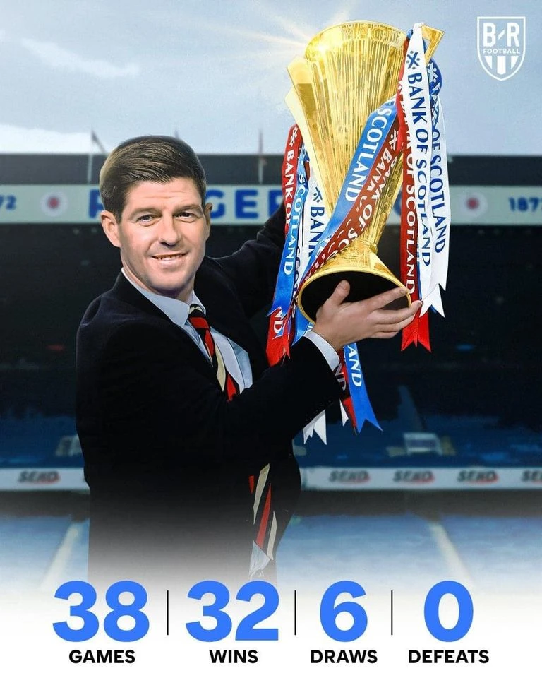 Huyền thoại Liverpool, HLV Steven Gerrard, vừa giúp Rangers lên ngôi Giải vô địch Scotland với thành tích không tưởng, bất bại toàn mùa giải, trong đó có 19/38 trận đấu sân nhà.