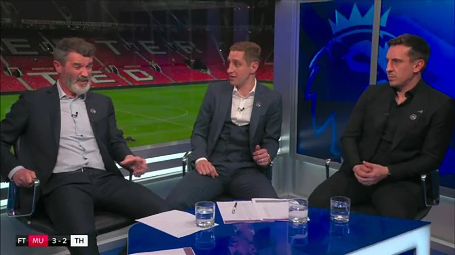 Neville và Keane cùng tham gia bình luận trên đài Sky Sports. ẢNH: SKY SPORTS