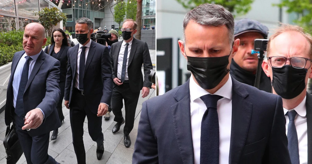 Trong phiên tòa trực tuyến, hàng trăm phóng viên đứng bên ngoài đeo khẩu trang đưa tin và tường thuật. Những hình ảnh Giggs trong bộ đồ vest được hộ tống bởi cảnh sát tòa bước vào tòa.